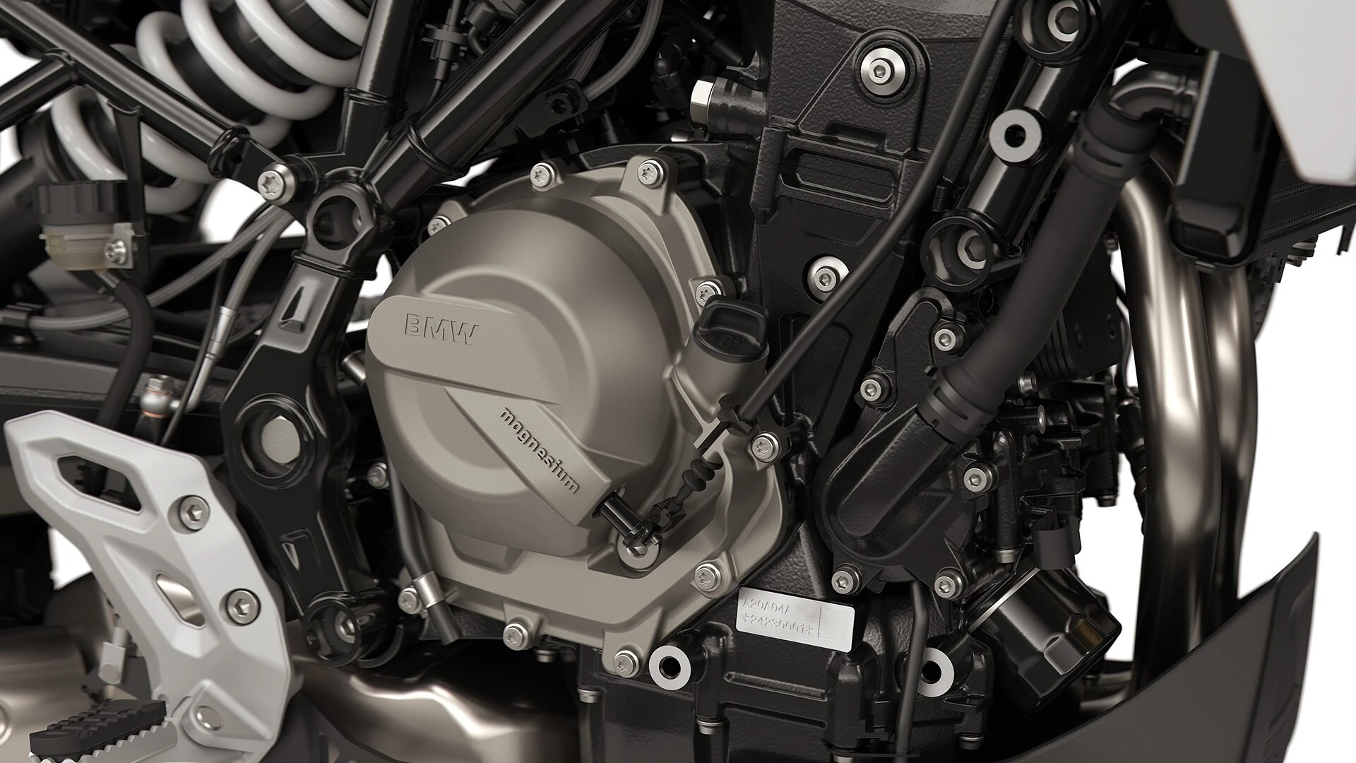 Привід F 450 GS розроблено повністю заново. Це компактний, охочий до обертів і легкий рядний двоциліндровий двигун об’ємом рівно 420 см³ і потужністю 48 к.с. Максимальний крутний момент 43 Нм досягається вже при 6750 об/хв. Нове зміщення шатунних шийок на 135 градусів забезпечує оптимальний баланс вібрацій і додає характерного звучання. У поєднанні з малою вагою мотоцикла 178 кг F 450 GS дарує жвавість, задоволення від їзди та маневреність — як на асфальті, так і на бездоріжжі.